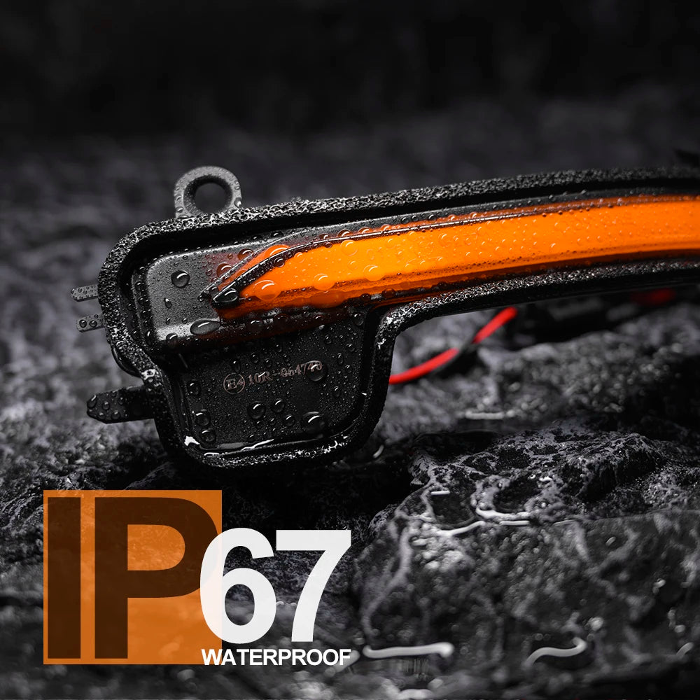 Dynamic Sequential LEDs – Amber flowing light pattern for a premium look.